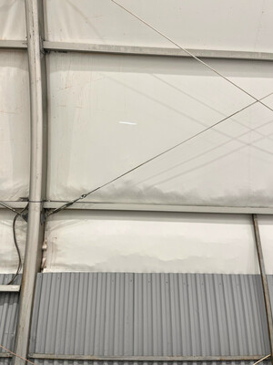 ✨Сегодня работники спортшколы подручными средствами заклеили прорезь, но в случае дождей это не сильно спасет от протекания. Кроме того дыра со временем будет только расширяться.